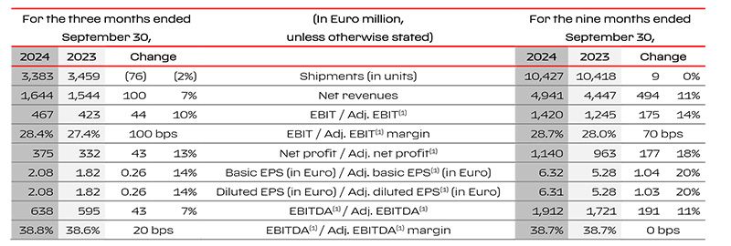 Los ingresos netos para el tercer trimestre de 2024 fueron de 1.644 millones de euros, un aumento del 6,5% o del 7,0% a tipos de cambio constantes. .